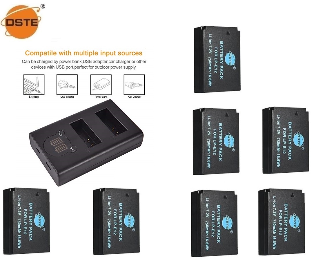 DSTE LP-E12 Lithium-Ion Battery Pack With LCD Display Dual USB-C Charger 代用鋰電池連雙充充電機 (For Canon,7.2V,750mAh)