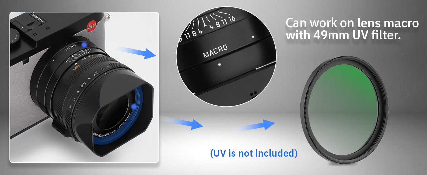 ***Does not affect the use of original lens caps. Does not affect the use of 49mm UV filter on the macro function of the camera.***