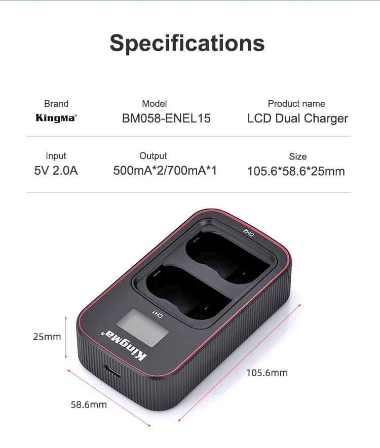 KINGMA EN-EL15 / K-EN-EL15 Fully Decoded Lithium-Ion Battery Pack With BM058-ENEL15 USB-C Dual Charger 代用鋰電池連充電機 (CCC Certification / 3C認證)
