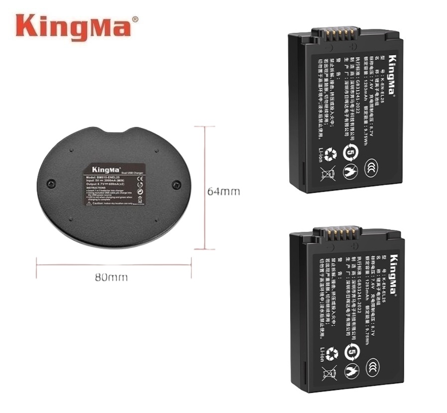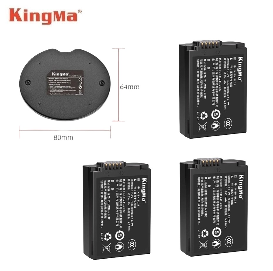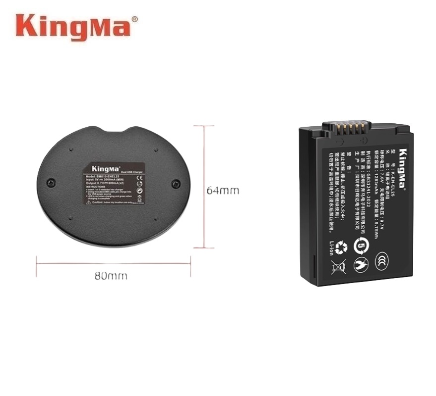 KINGMA EN-EL25 Fully Decoded Lithium-Ion Battery Pack With BM015-ENEL25 USB-A Dual Charger 代用鋰電池連充電機 (CCC Certification / 3C認證)