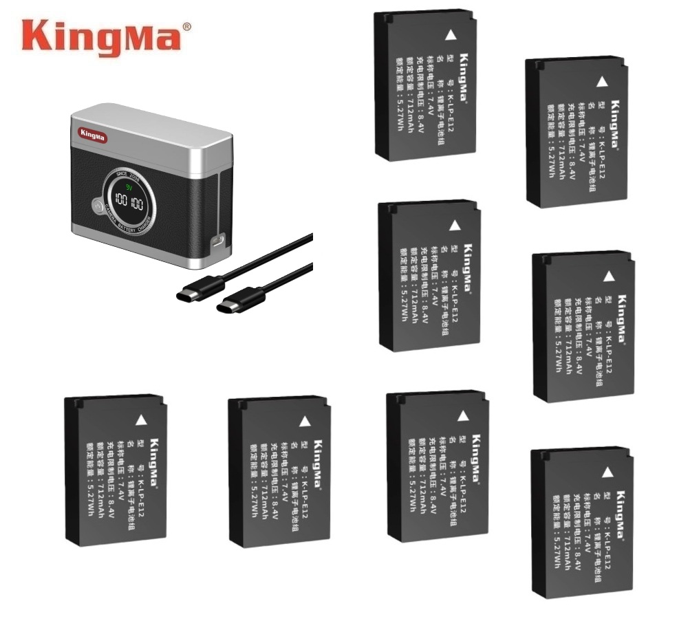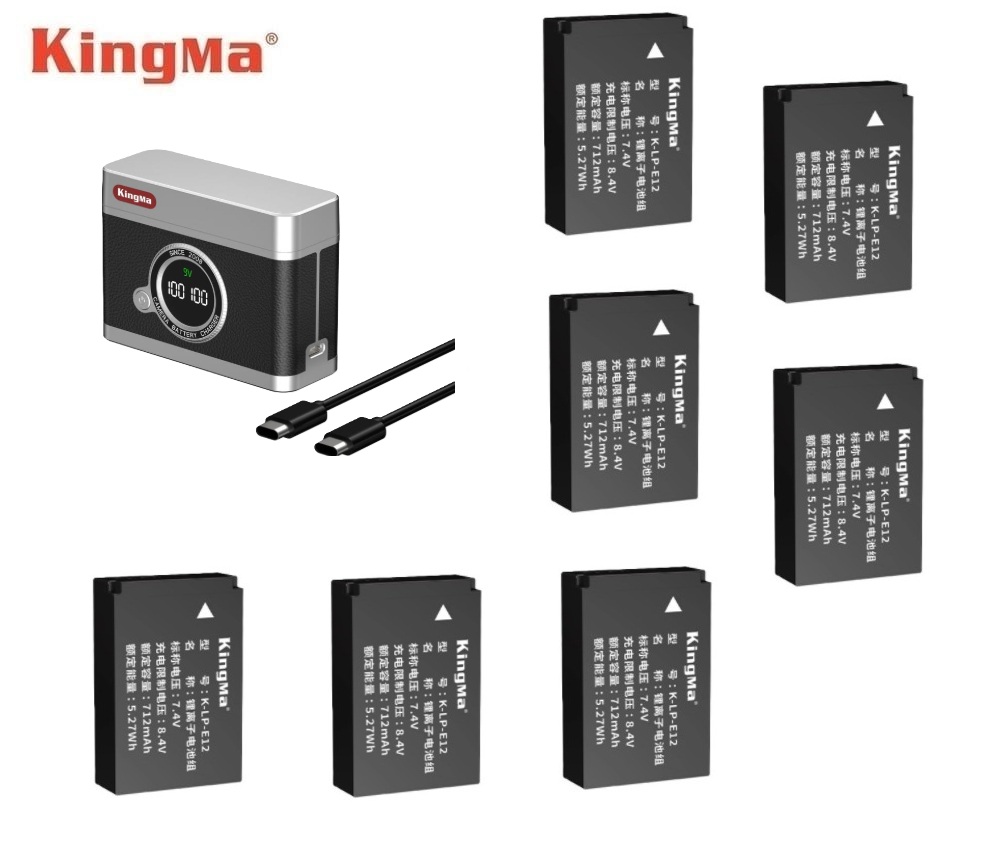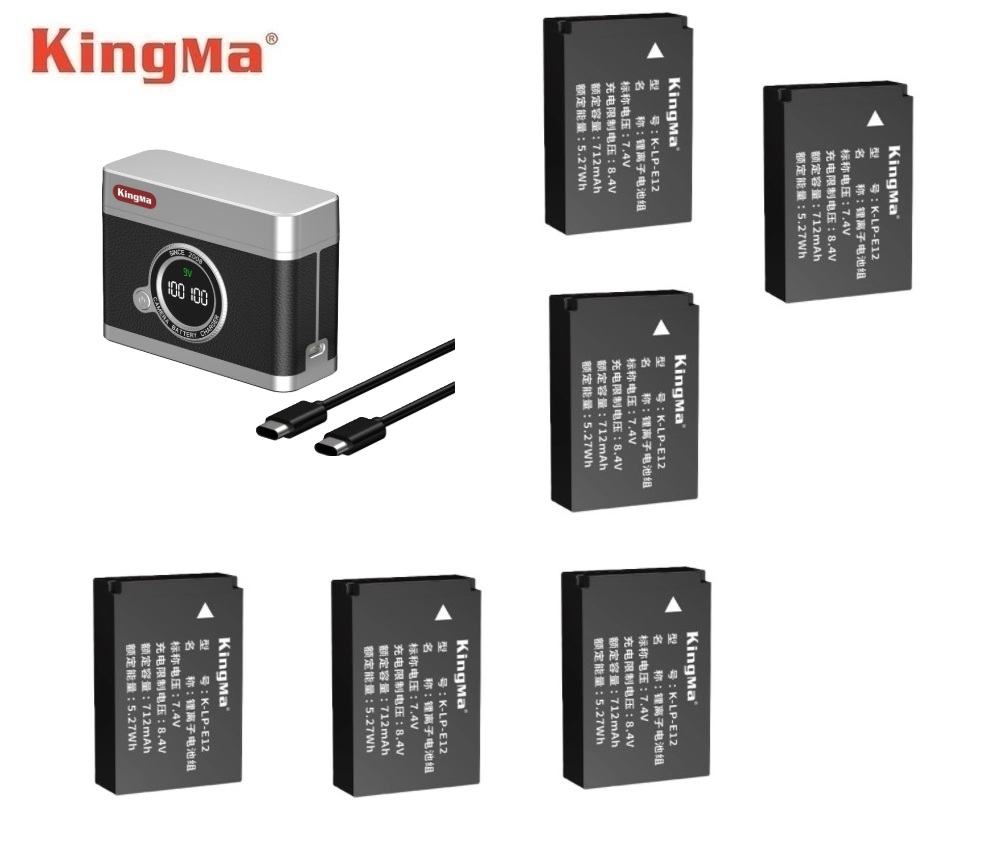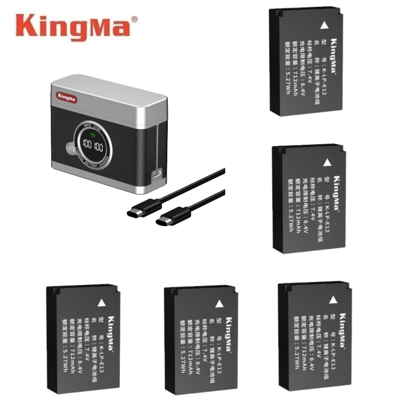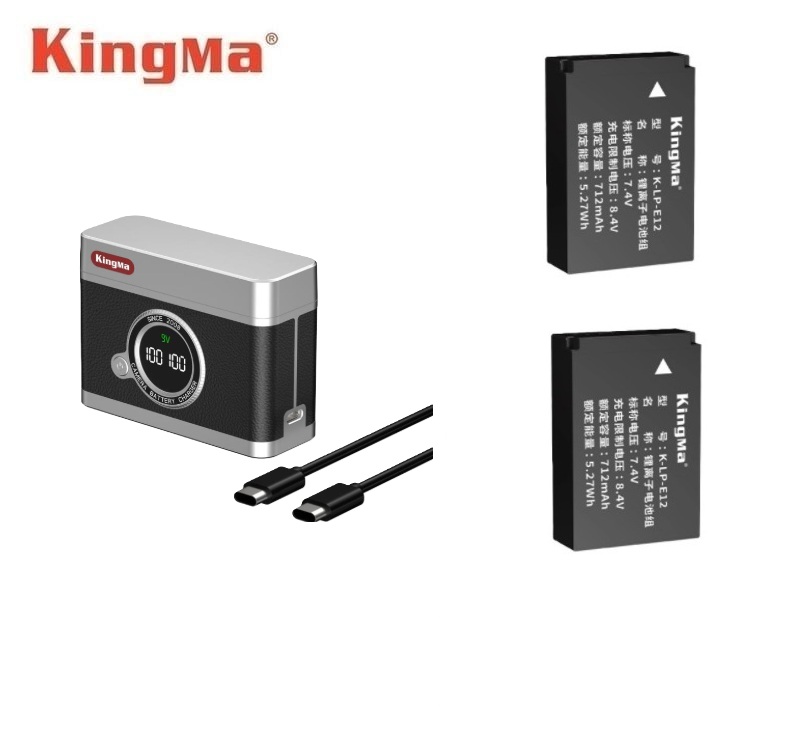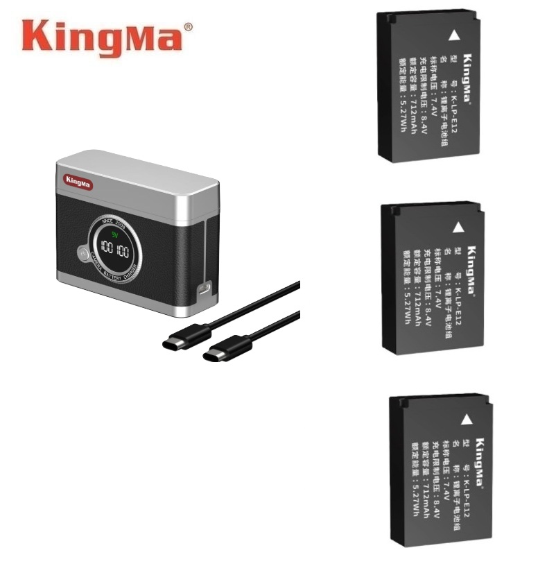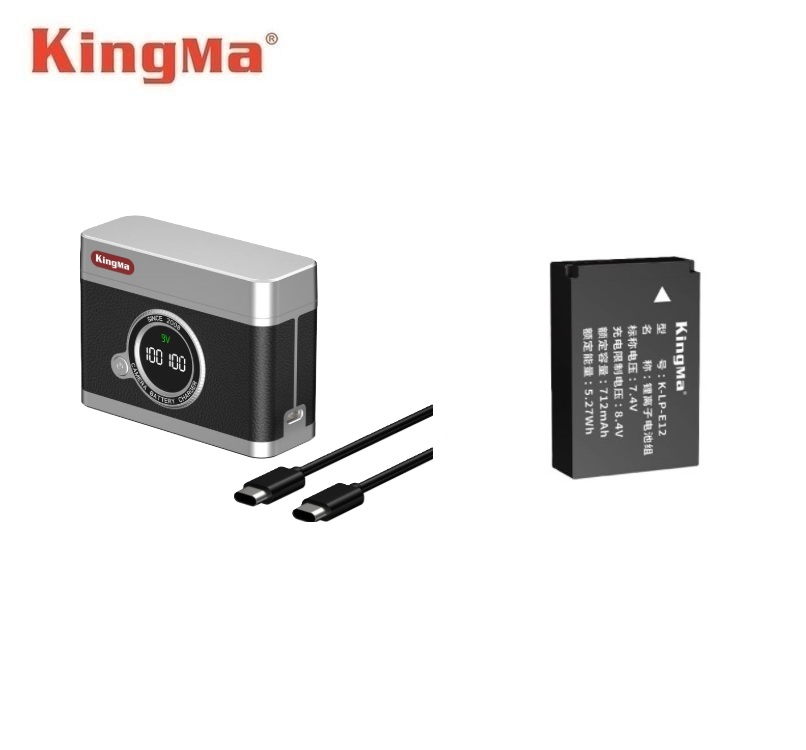KINGMA LP-E12 / K-LP-E12 Fully Decoded Lithium-Ion Battery Pack With BM070-LPE12 Black LCD Display USB-C Dual Charger 代用鋰電池連充電機 (CCC Certification / 3C認證)