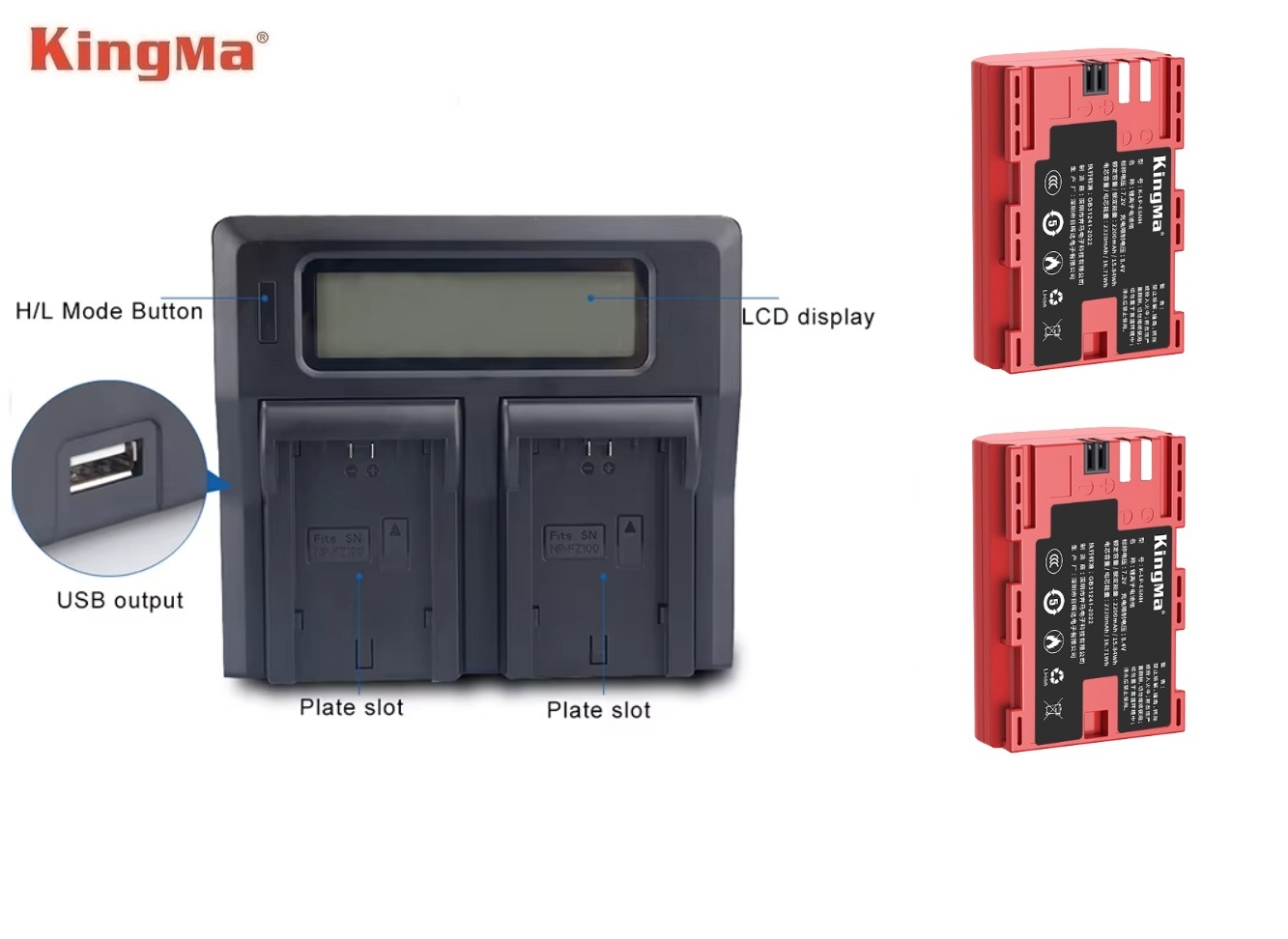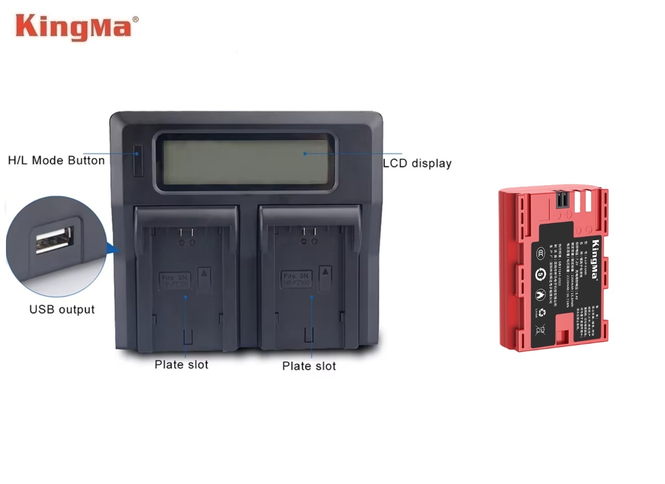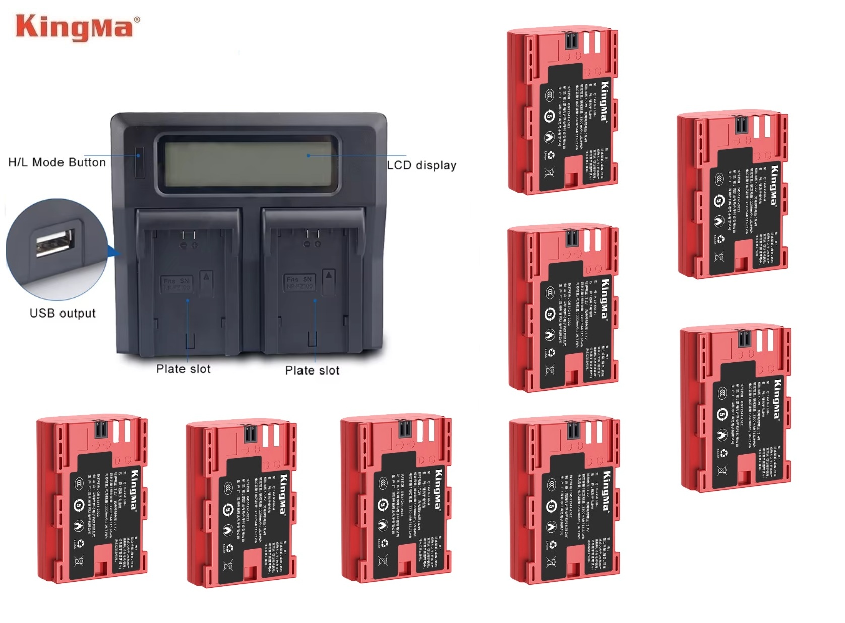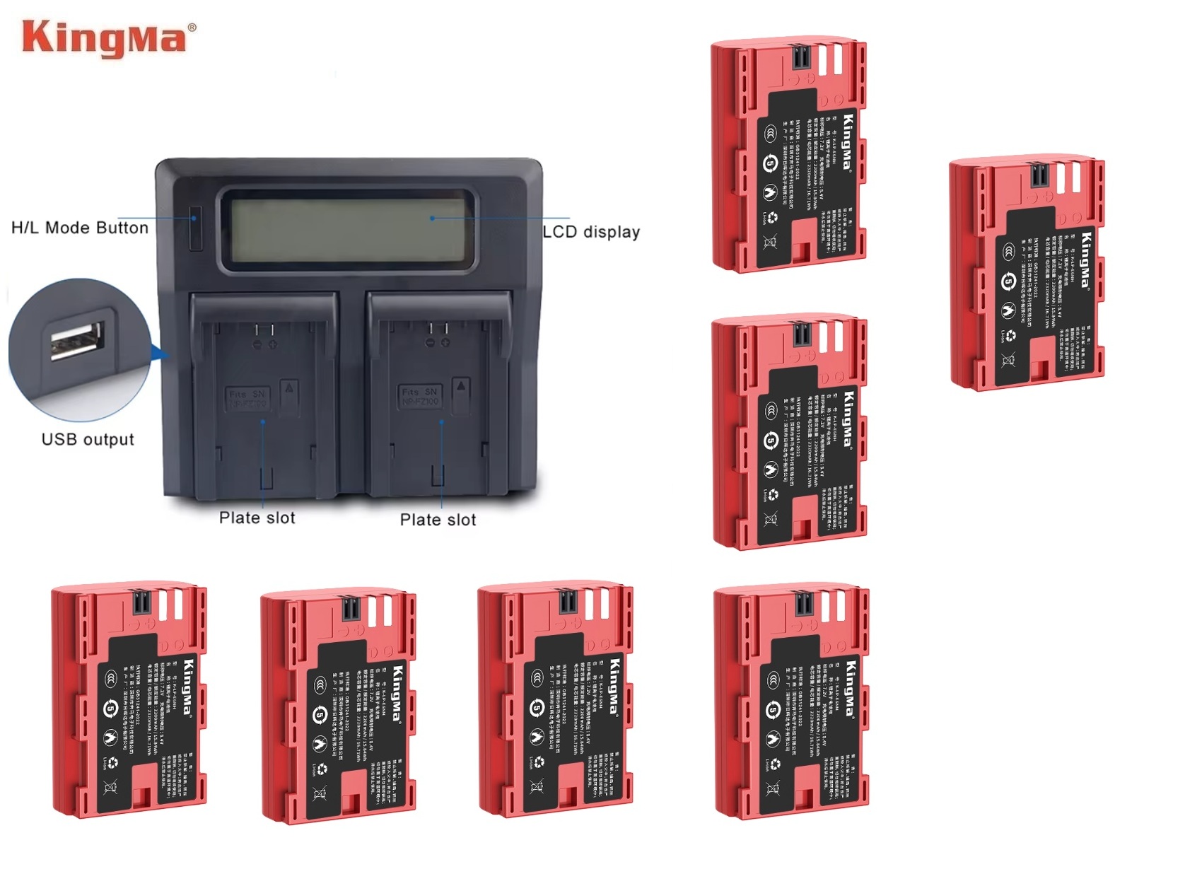 KINGMA LP-E6NH / K-LP-E6NH Fully Decoded Lithium-Ion Battery Pack With DC-LCD--LPE6 AC Dual Charger 代用鋰電池連雙充充電機 (CCC Certification / 3C認證)