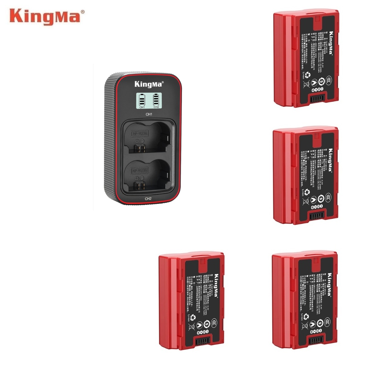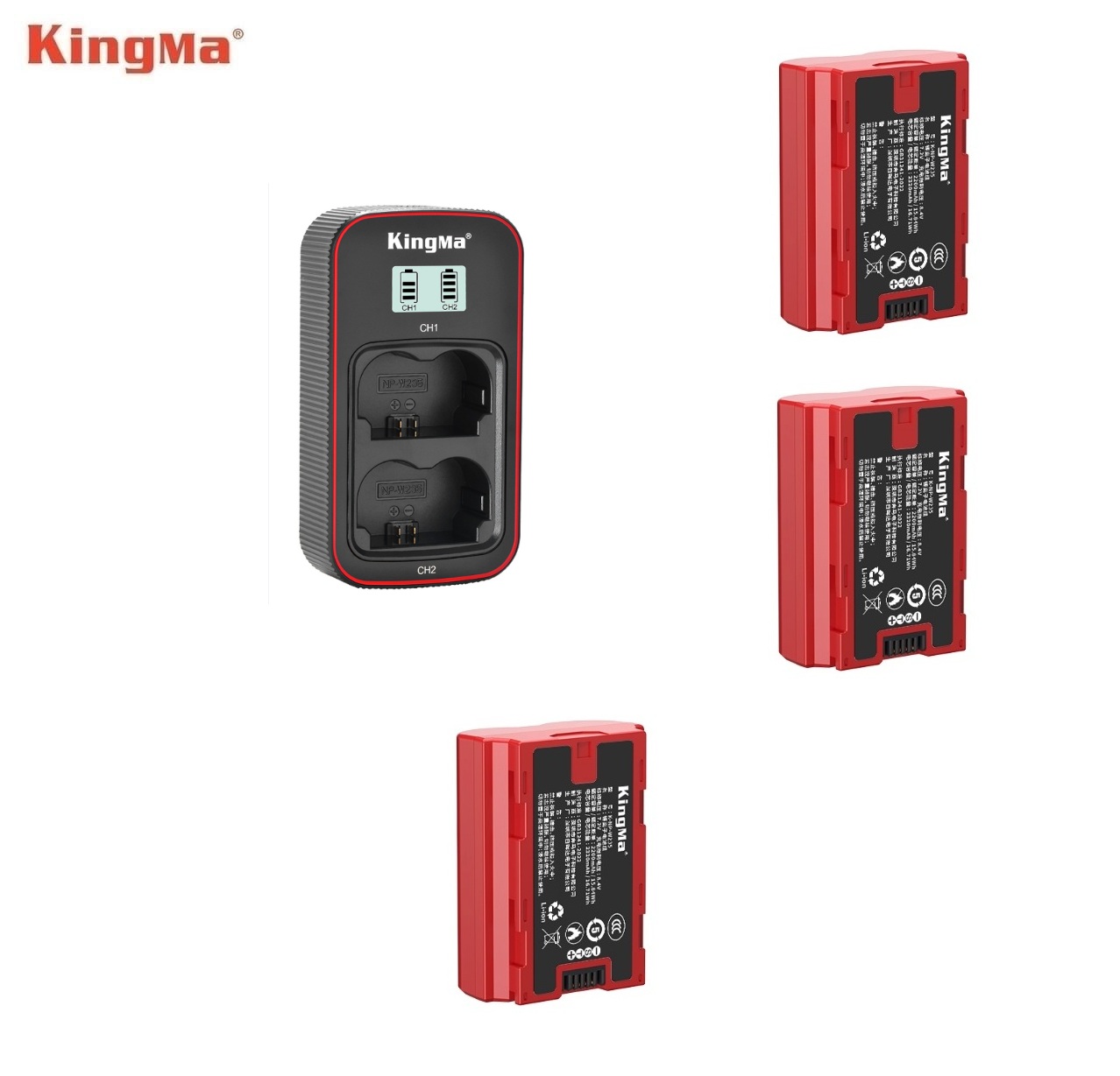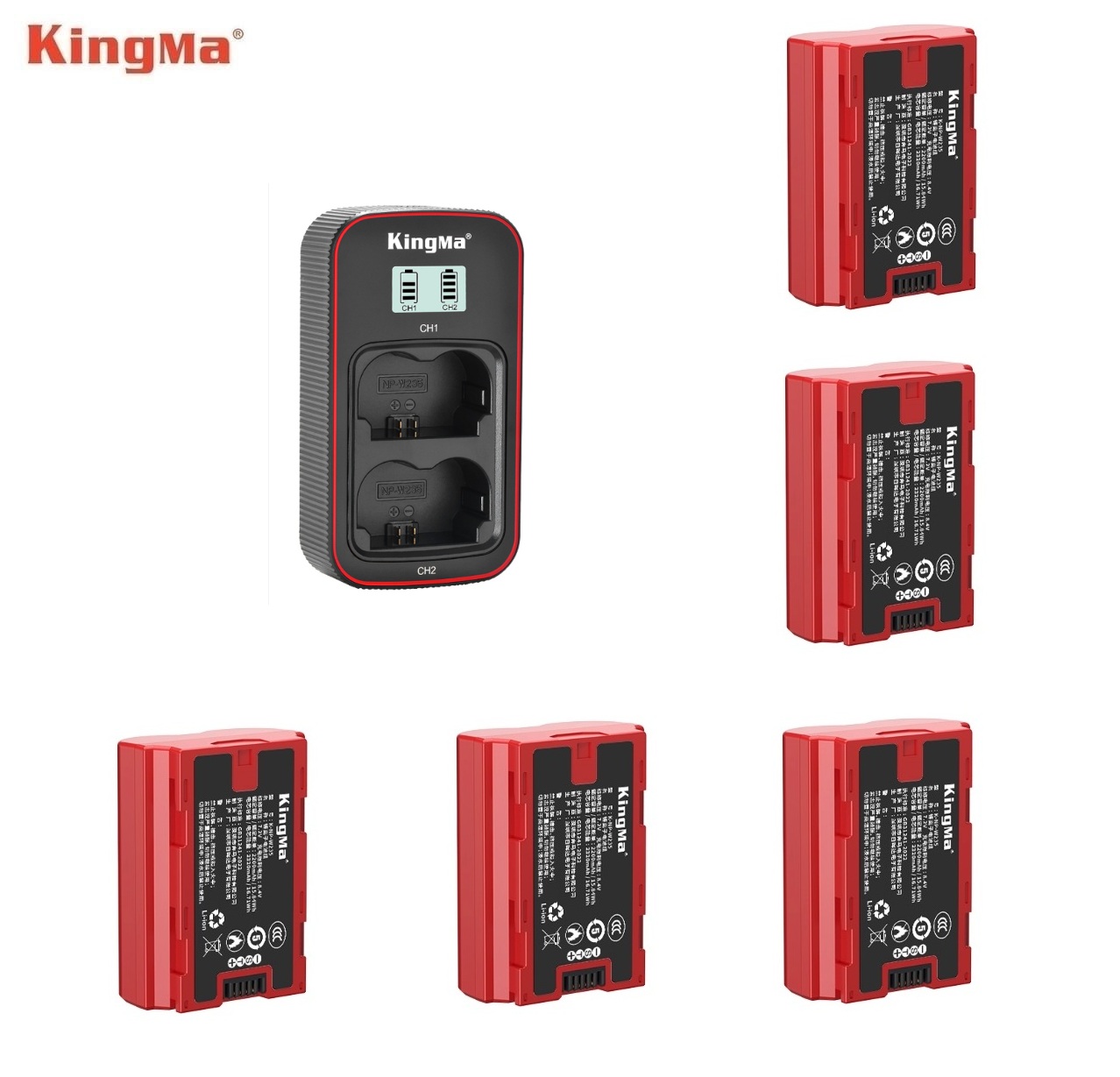 KINGMA NP-W235 / K-NP-W235 Fully Decoded Lithium-Ion Battery Pack With BM058-NPW235 LCD Display USB-C Dual Charger 代用鋰電池連充電機 (CCC Certification / 3C認證)