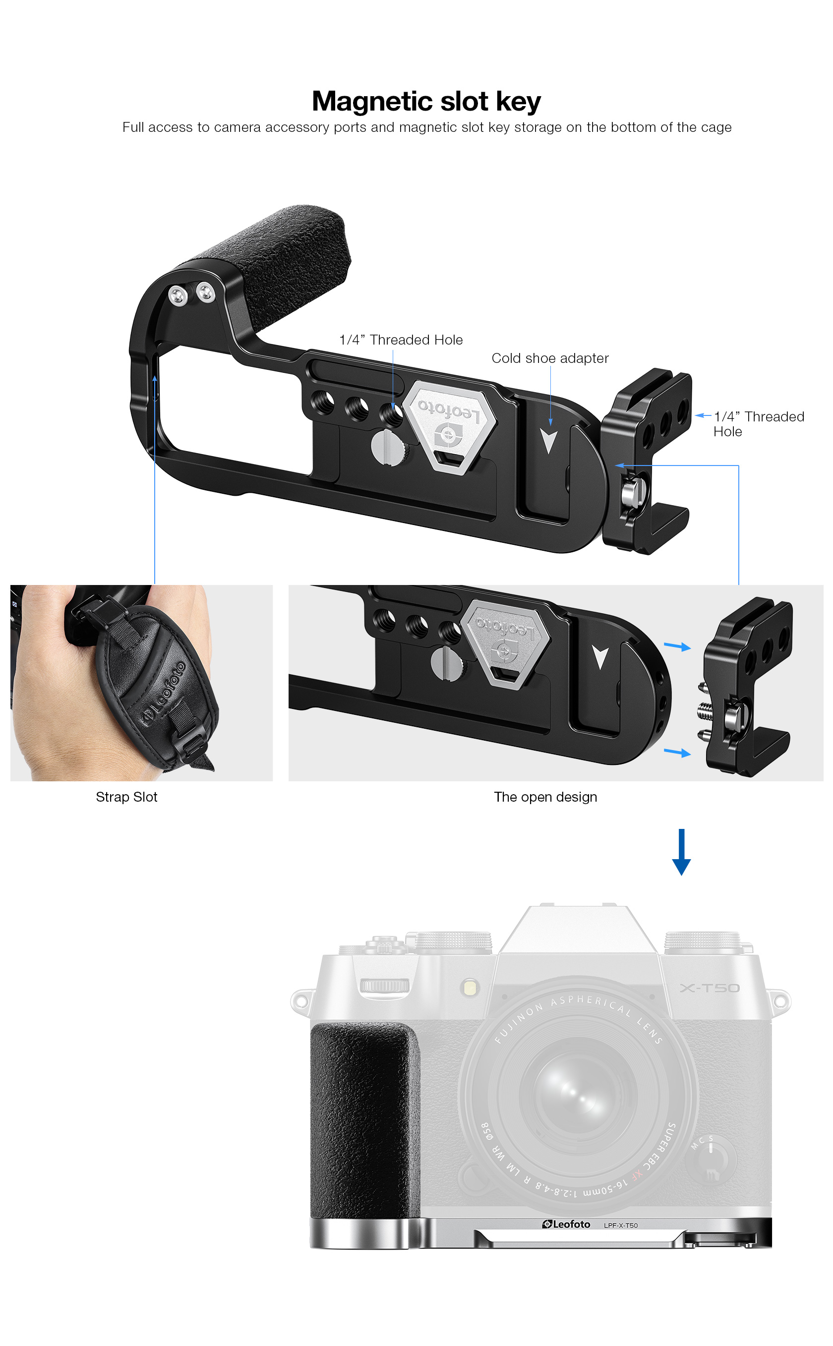 • Precision Engineered FUJIFILM X-T50 • Full Access to Ports, Cards, and Battery • Precision CNC Machined from Solid Aircraft-Grade Aluminum • Fully Compatible with Arca-Swiss $488 Phone, Camera OR Lens are not included. 電話、相機及鏡頭只作測試用,並不包括其中。 ***如欲選購,請註明型號或Cap圖*** WhatsApp / Signal:5128-8255 https://wa.me/51288255 Expected Availability:1 -2 Working Days 一般等待時間為一至兩個工作天。