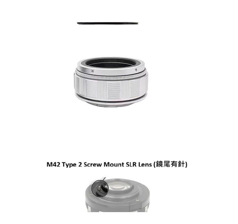 Brand:LianZhong Lens: • M42 Type 2 Screw Mount SLR Lens (鏡尾有針) Compatible Cameras 以下機身適用: Nikon Z-Mount Mirrorless Cameras - Popular models include: • Nikon Z 30, Z 50, Z fc. • Nikon Z 5, Z 6, Z 6II, Z6 III, Z 7, Z 7II, Z 8, Z 9, Zf. Mode 款式: • Silver $678 • Black $638 Camera OR Lens are not included. 相機及鏡頭只作測試用,並不包括其中。 • This is a manual adapter, so lens functions that rely on electronic communication with the camera body (autofocus, AE metering, image stabilization, etc.) will be disrupted. ***如欲選購,請註明型號或Cap圖*** WhatsApp / Signal:5128-8255 https://wa.me/51288255 Expected Availability:1 -2 Working Days 一般等待時間為一至兩個工作天。