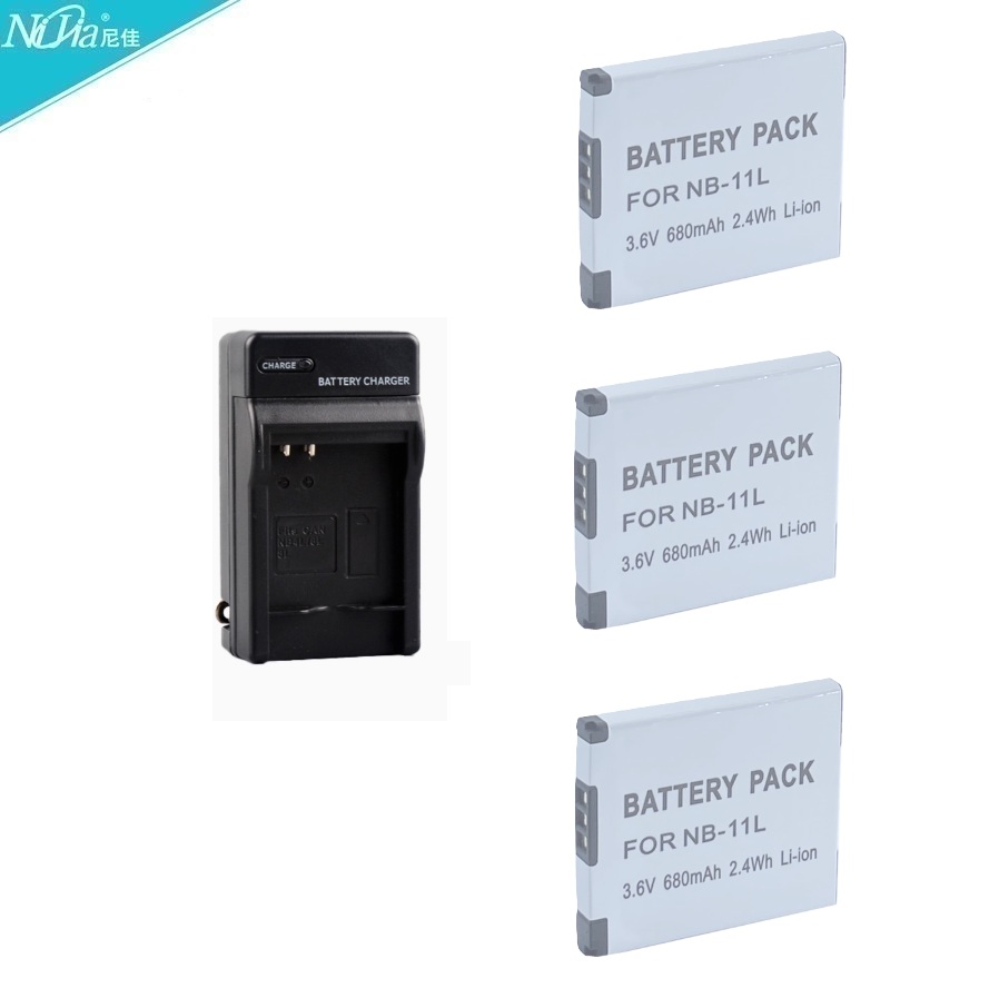 3 PCS NB-11L Batteries With Single-Bay Travel Battery Charger 三電池連充電機