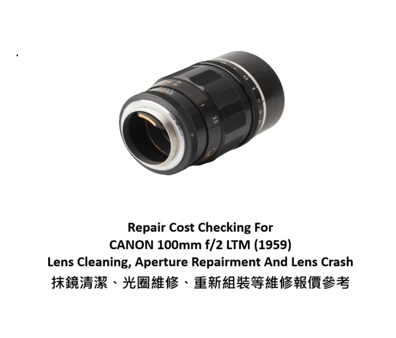 Repair Cost Checking For CANON 100mm f/2 LTM (1959) Lens Cleaning, Aperture Repairment And Lens Crash 抹鏡清潔、光圈維修、重新組裝等維修報價參考
