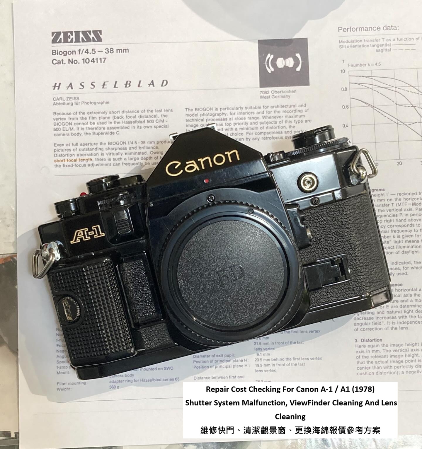 Repair Cost Checking For Canon A-1 / A1 (1978) Shutter System Malfunction, ViewFinder Cleaning And Lens Cleaning 維修快門、清潔觀景窗、更換海綿報價參考方案