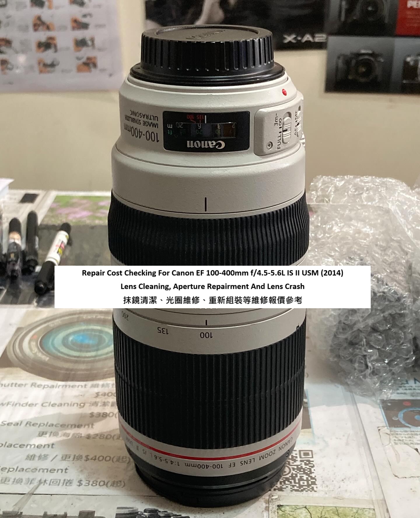 Repair Cost Checking For Canon EF 100-400mm f/4.5-5.6L IS II USM (2014) Lens Cleaning, Aperture Repairment And Lens Crash 抹鏡清潔、光圈維修、重新組裝等維修報價參考