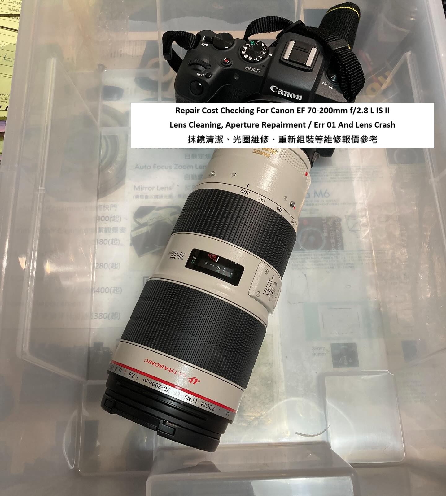 Repair Cost Checking For Canon EF 70-200mm f/2.8 L IS II USM Lens Cleaning, Aperture Repairment / Err 01 And Lens Crash 抹鏡清潔、光圈維修、重新組裝等維修報價參考