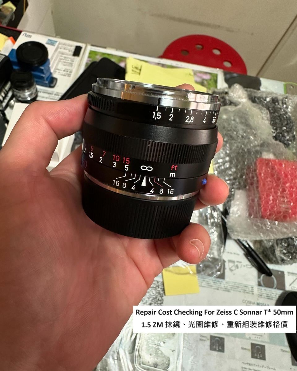 Repair Cost Checking For Carl Zeiss C Sonnar T* 50mm F/1.5 ZM (2004) / Carl Zeiss C Sonnar T* 1,5/50 ZM Lens Cleaning, Aperture Repairment And Lens Crash 抹鏡清潔、光圈維修、重新組裝等維修報價參考