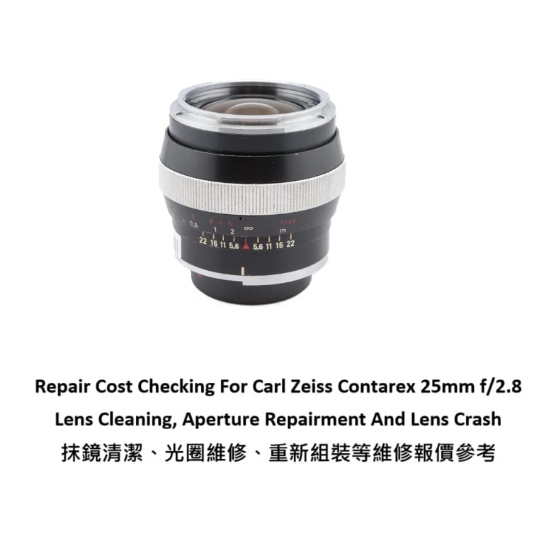 Repair Cost Checking For Carl Zeiss Contarex 25mm f/2.8 Lens Cleaning, Aperture Repairment And Lens Crash 抹鏡清潔、光圈維修、重新組裝等維修報價參考