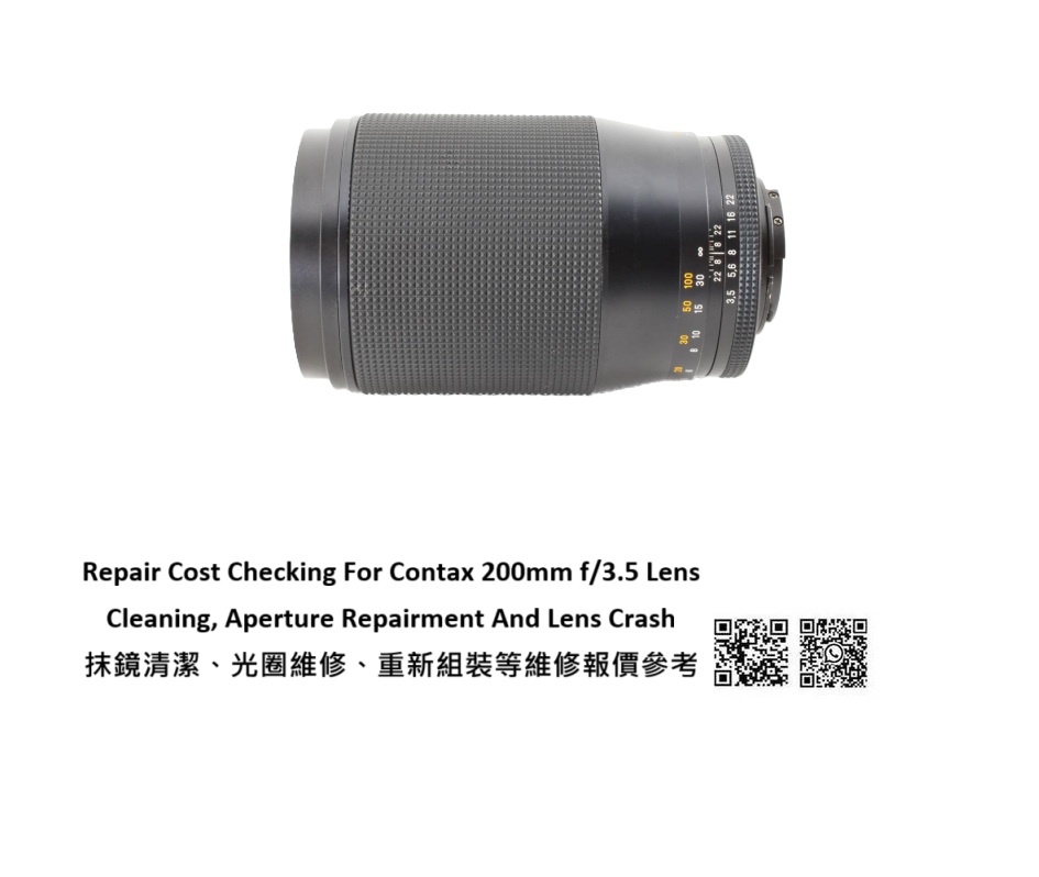 Repair Cost Checking For Contax 200mm f/3.5 Lens Cleaning, Aperture Repairment And Lens Crash 抹鏡清潔、光圈維修、重新組裝等維修報價參考