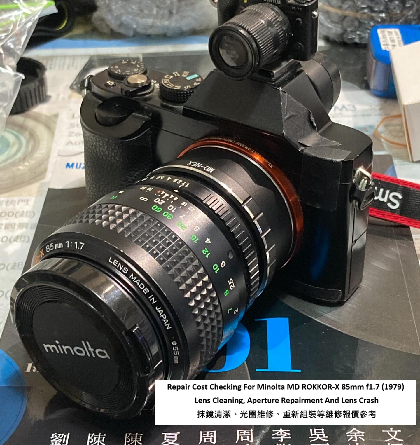 Repair Cost Checking For Minolta MD ROKKOR-X 85mm f1.7 (1979) Lens Cleaning, Aperture Repairment And Lens Crash 抹鏡清潔、光圈維修、重新組裝等維修報價參考