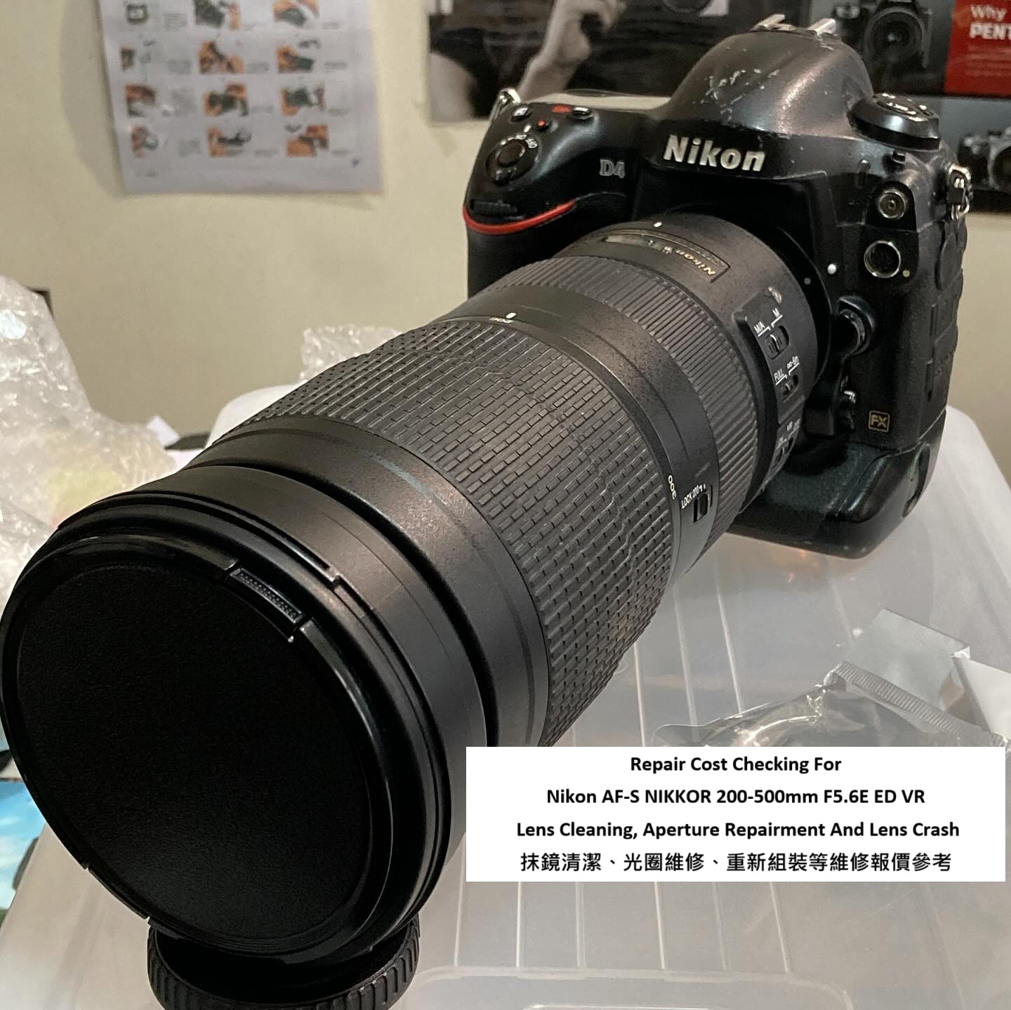 Repair Cost Checking For Nikon AF-S NIKKOR 200-500mm F5.6E ED VR Lens Cleaning, Aperture Repairment And Lens Crash 抹鏡清潔、光圈維修、重新組裝等維修報價參考