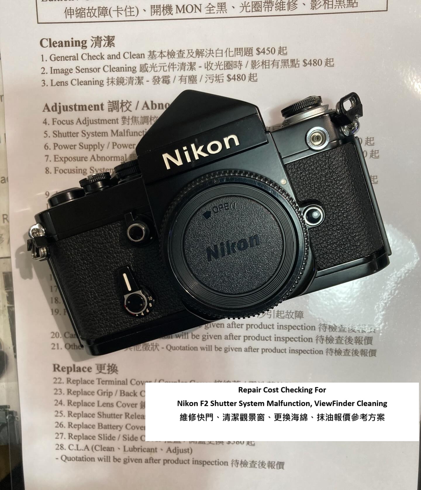Nikon F2 (1971) 改良版大F,由1506件零件组成,快門速度達1/200,亦可做1/80-1/2000s無極變速,最慢10秒,有B、T和多重曝光