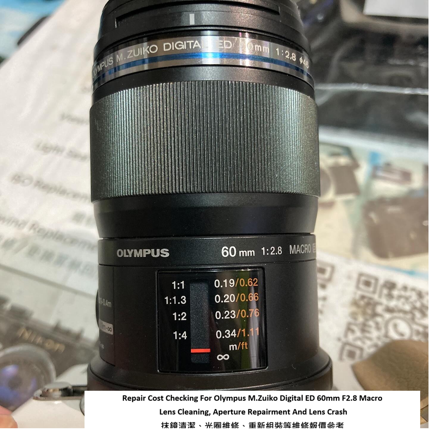 Repair Cost Checking For Olympus M.Zuiko Digital ED 60mm f/2.8 Macro Lens Cleaning, Aperture Repairment And Lens Crash 抹鏡清潔、光圈維修、重新組裝等維修報價參考