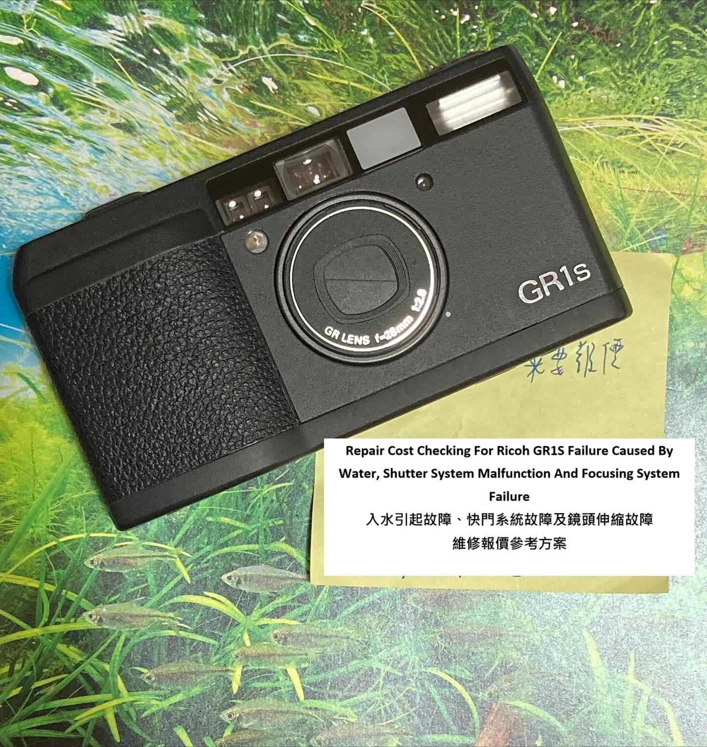 Repair Cost Checking For Ricoh GR1S Failure Caused By Water, Shutter System Malfunction And Focusing System Failure 入水引起故障、快門系統故障及鏡頭伸縮故障維修報價參考方案