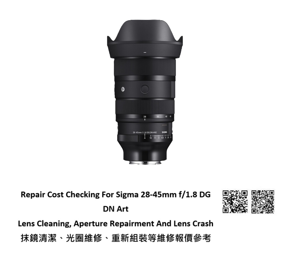 Repair Cost Checking For Sigma 28-45mm f/1.8 DG DN Art Lens Cleaning, Aperture Repairment And Lens Crash 抹鏡清潔、光圈維修、重新組裝等維修報價參考