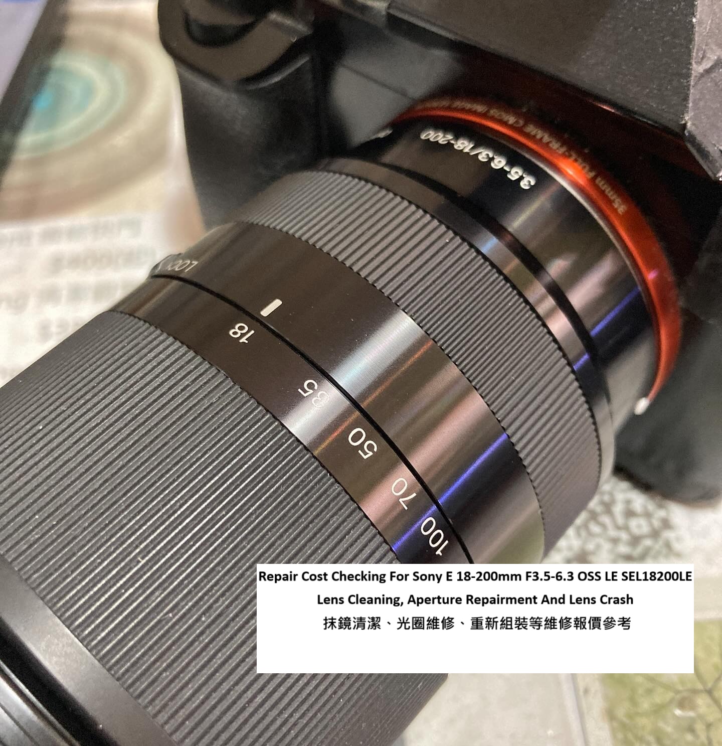 Repair Cost Checking For Sony E 18-200mm F3.5-6.3 OSS LE SEL18200LE Lens Cleaning, Aperture Repairment And Lens Crash 抹鏡清潔、光圈維修、重新組裝等維修報價參考