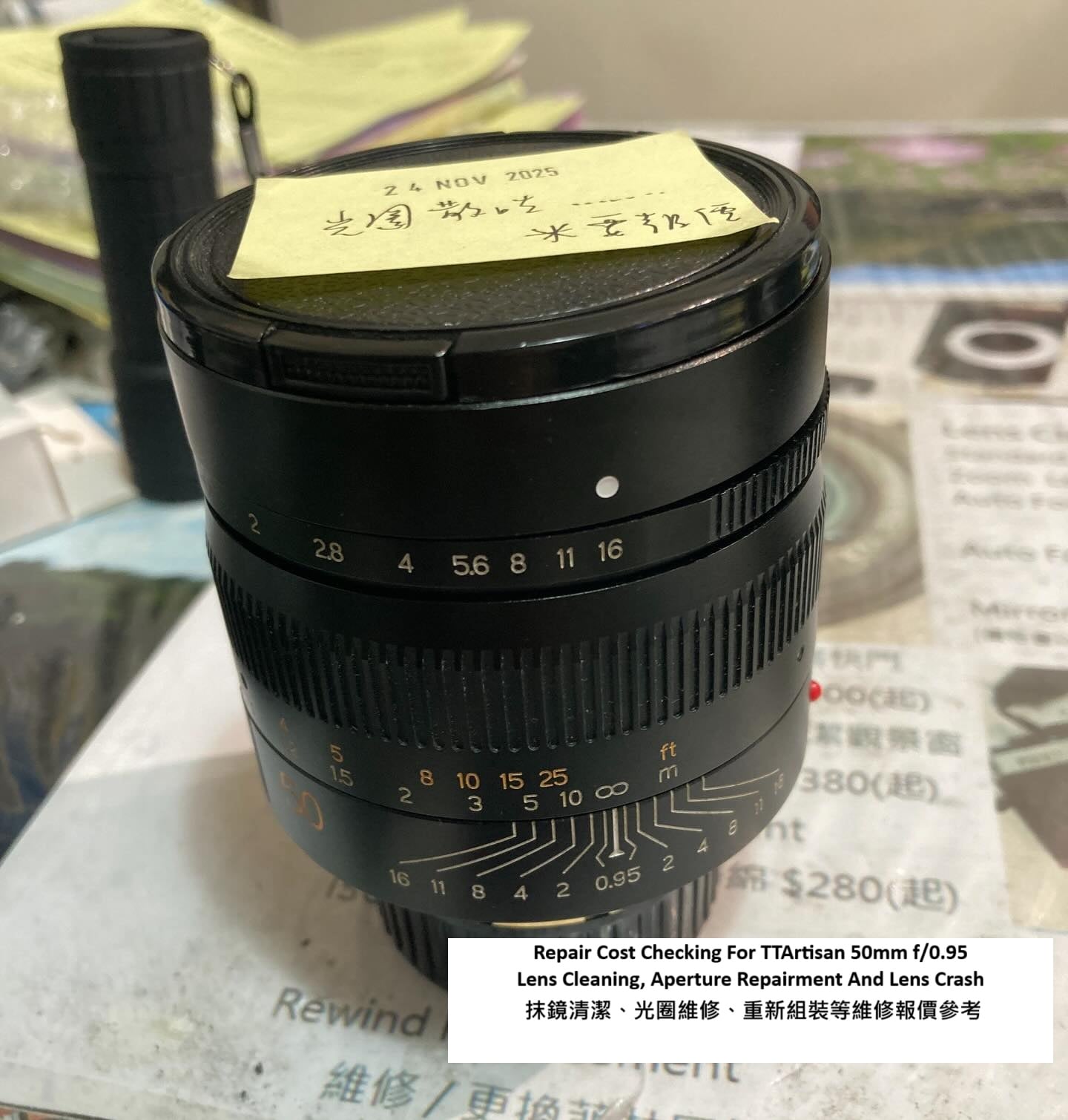 Repair Cost Checking For TTArtisan 50mm f/0.95 Lens Cleaning, Aperture Repairment And Lens Crash 抹鏡清潔、光圈維修、重新組裝等維修報價參考