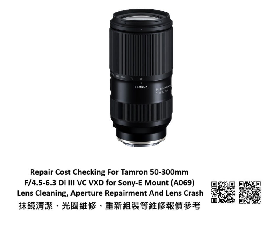 Repair Cost Checking For Tamron 50-300mm F/4.5-6.3 Di III VC VXD for Sony-E Mount (A069) Lens Cleaning, Aperture Repairment And Lens Crash 抹鏡清潔、光圈維修、重新組裝等維修報價參考