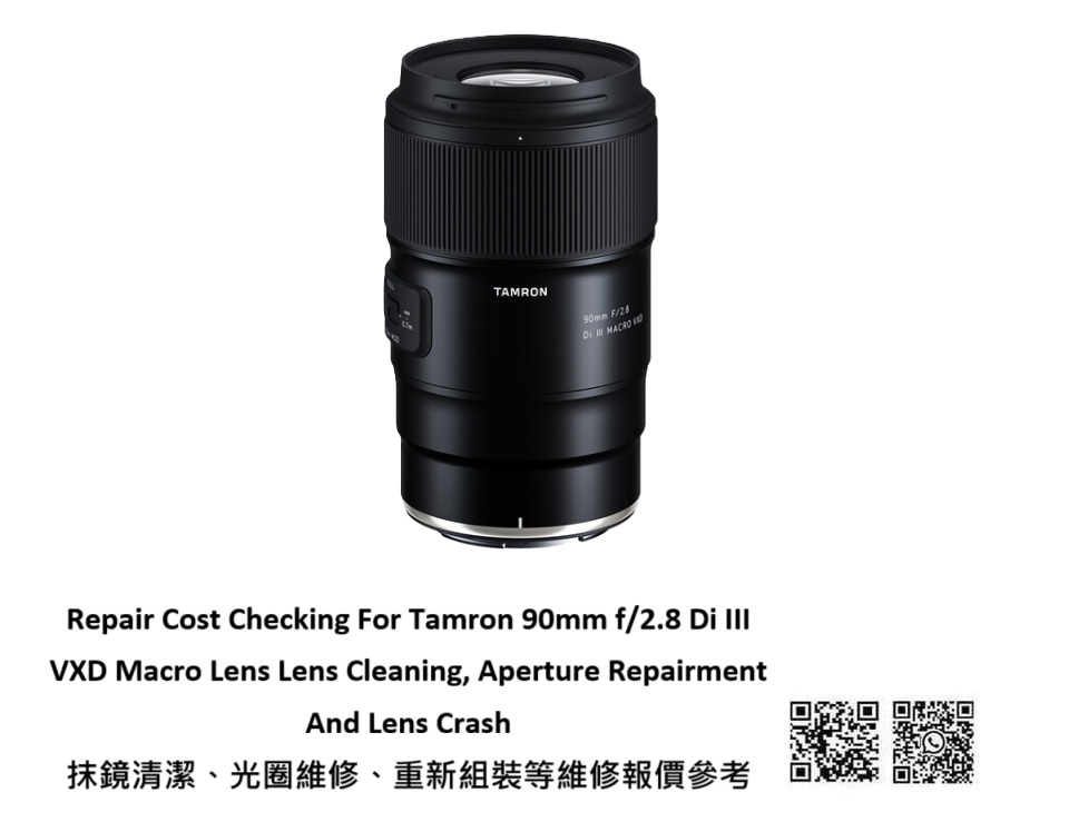 Repair Cost Checking For Tamron 90mm f/2.8 Di III VXD Macro Lens Lens Cleaning, Aperture Repairment And Lens Crash 抹鏡清潔、光圈維修、重新組裝等維修報價參考