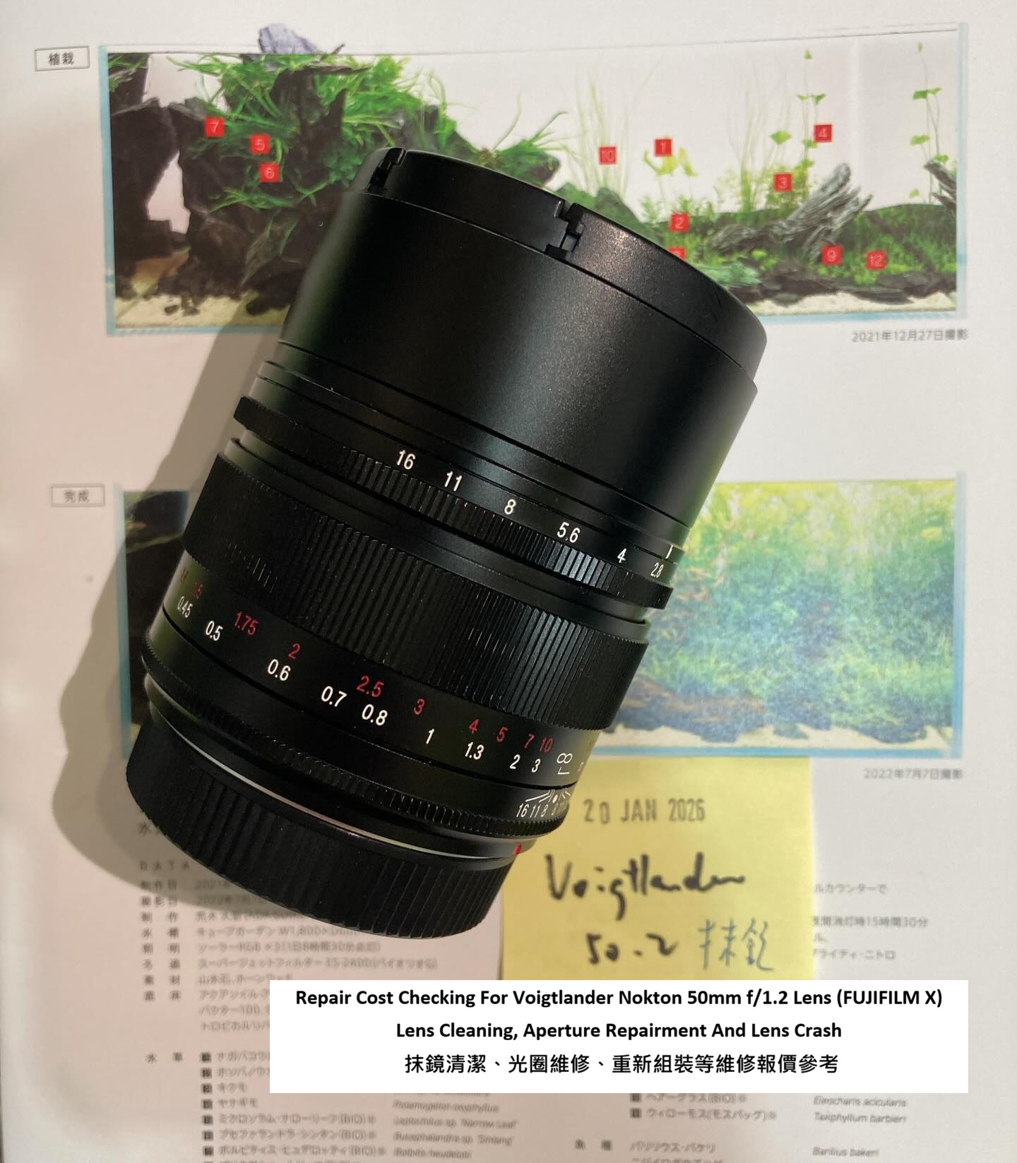 Repair Cost Checking For Voigtlander Nokton 50mm f/1.2 Lens (FUJIFILM X) Lens Cleaning, Aperture Repairment And Lens Crash 抹鏡清潔、光圈維修、重新組裝等維修報價參考
