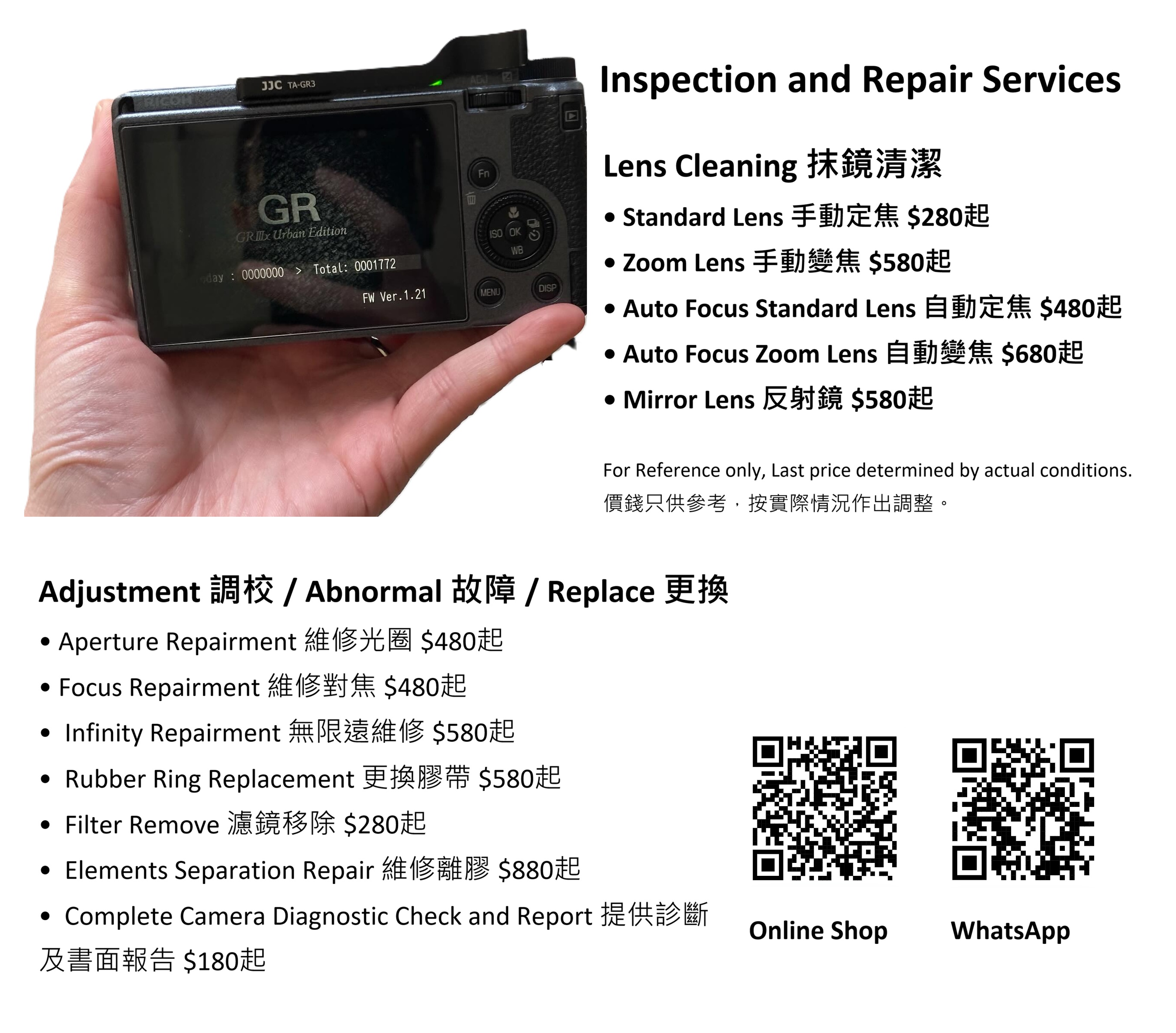 請注意: 以上費用只作參考用途並以零件供應情況為準。如有任何爭議,我們保留最終決定權。