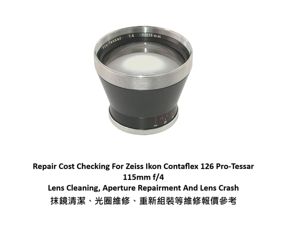 Repair Cost Checking For Zeiss Ikon Contaflex 126 Pro-Tessar 115mm f/4 Lens Cleaning, Aperture Repairment And Lens Crash 抹鏡清潔、光圈維修、重新組裝等維修報價參考