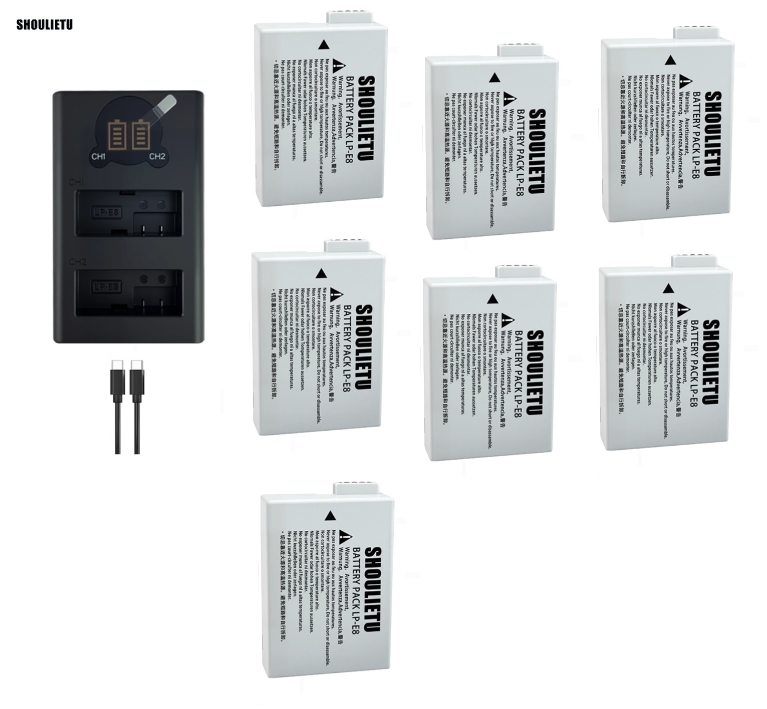7 PCS LP-E8 Batteries With LCD Display Dual USB Type-C Charger 七電池連顯示電量雙充電機