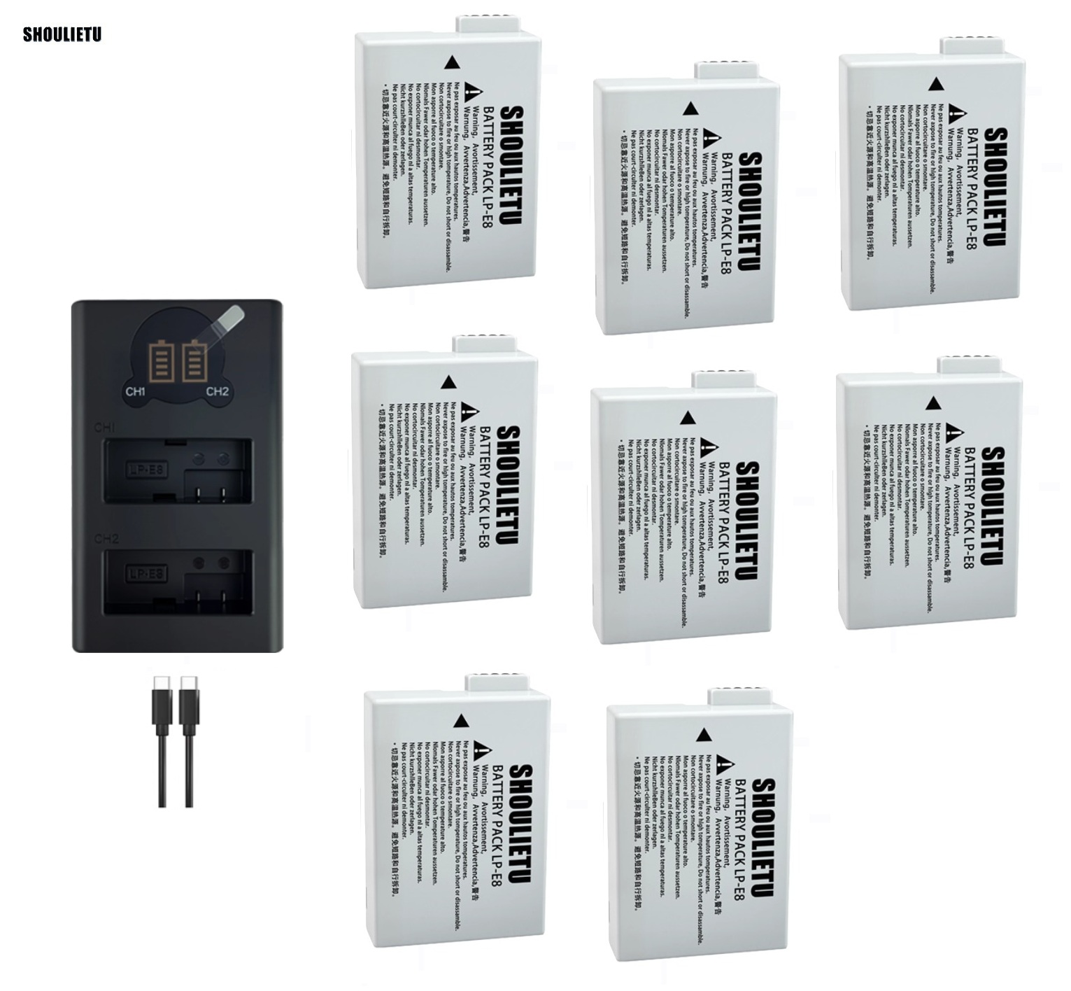 8 PCS LP-E8 Batteries With LCD Display Dual USB Type-C Charger 八電池連顯示電量雙充電機