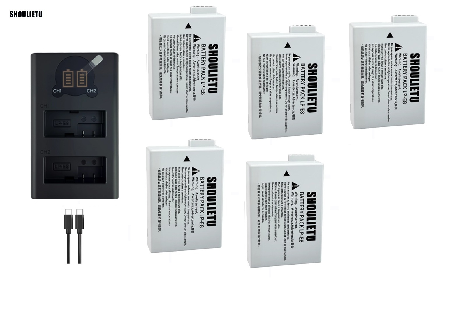 5 PCS LP-E8 Batteries With LCD Display Dual USB Type-C Charger 五電池連顯示電量雙充電機
