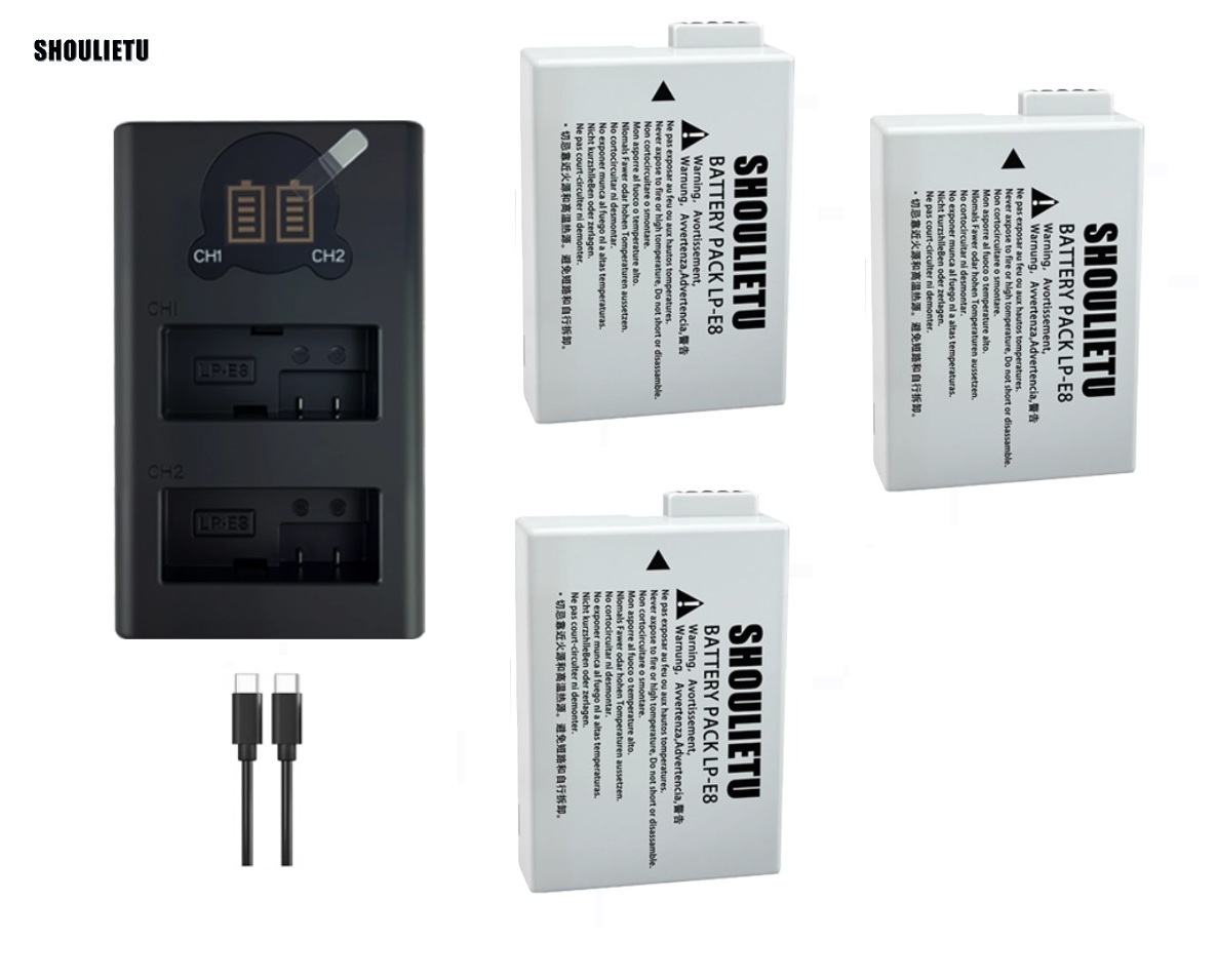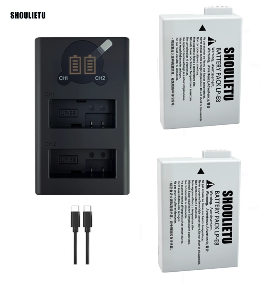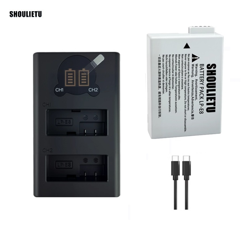 SHOULIETU CANON LP-E8 Lithium-Ion Battery Pack With LCD Display Dual USB Type-C Charge 代用鋰電池連顯示電量雙充電機