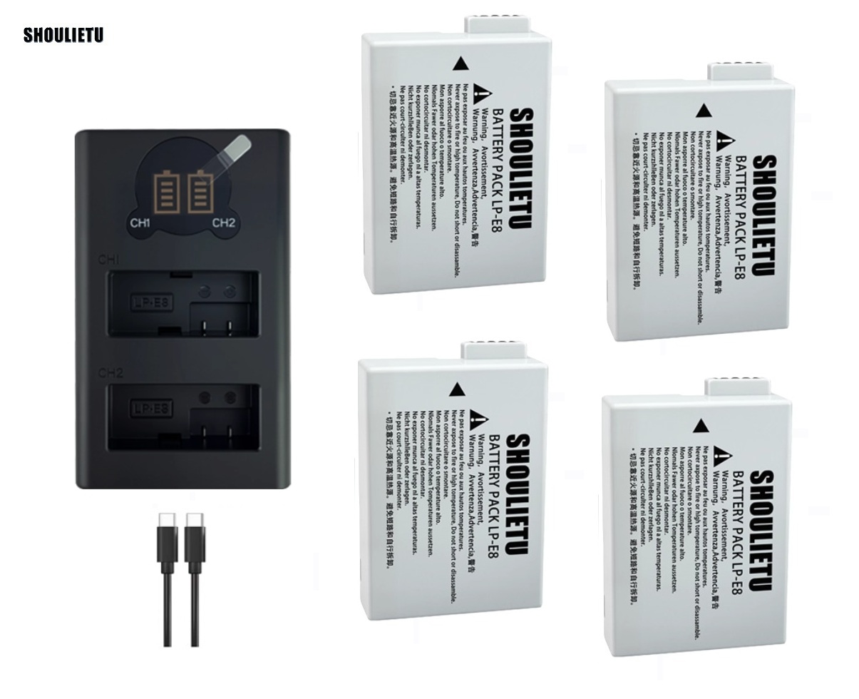 4 PCS LP-E8 Batteries With LCD Display Dual USB Type-C Charger 四電池連顯示電量雙充電機