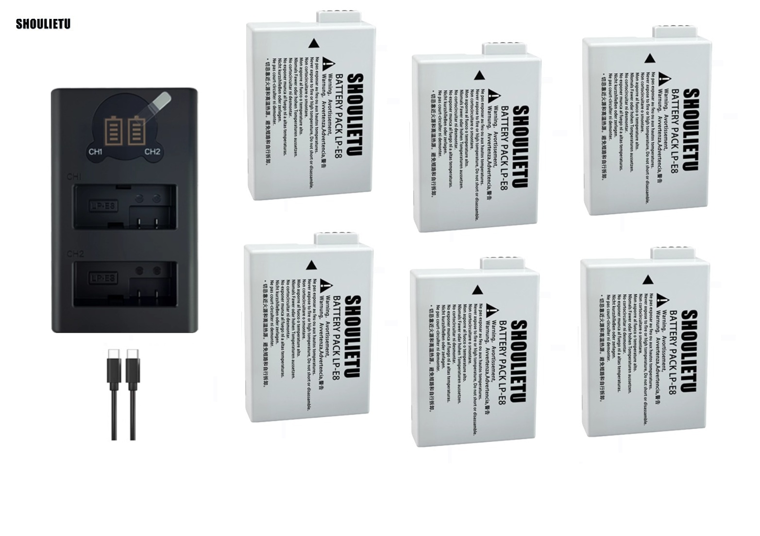 6 PCS LP-E8 Batteries With LCD Display Dual USB Type-C Charger 六電池連顯示電量雙充電機