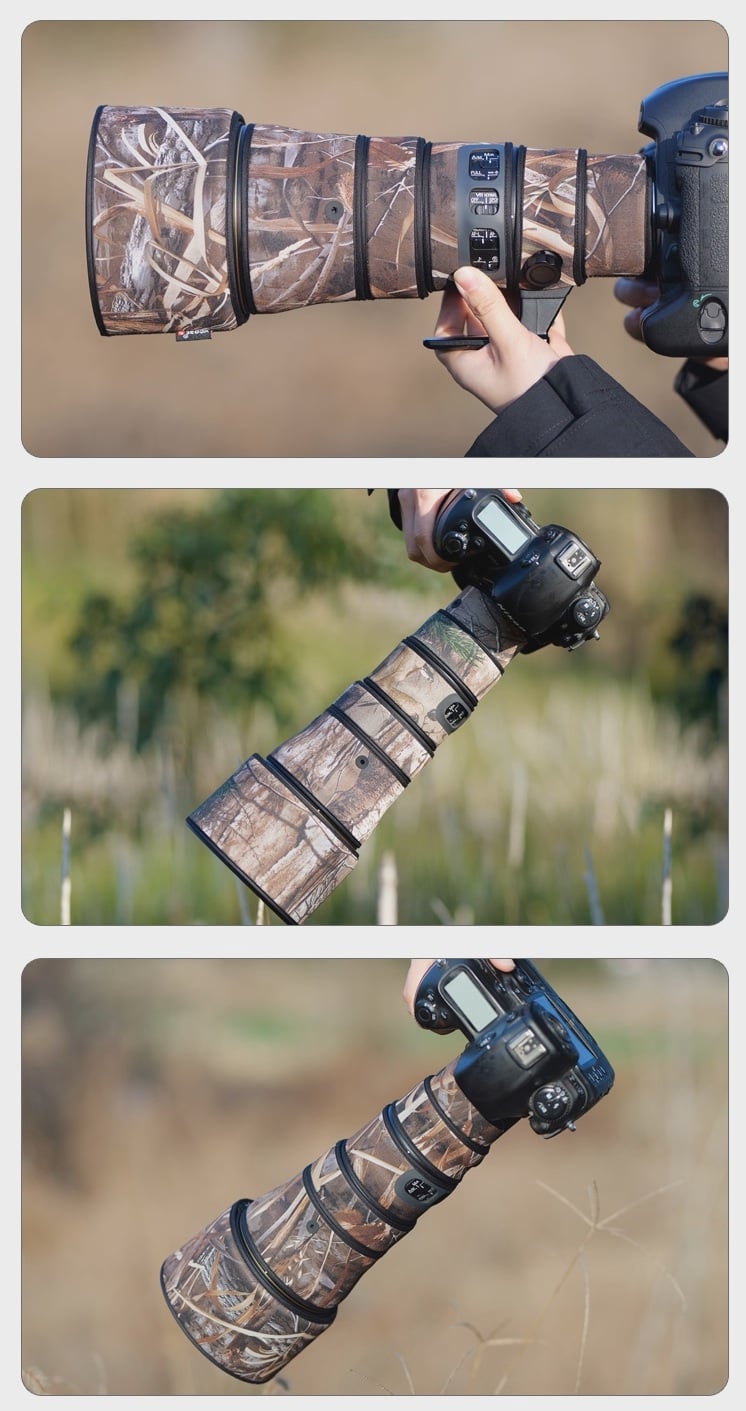 Brand:XCOAT WaterProof 防水 Product Highlights: 1. Easy to install and remove. 2. All button remains functional and easy access to camera controls and lens 3. The lens protective coat slides on like a sleeve to protects lens from dust, sand, dings, scratches and impact. 4. Camouflage patterns help conceal by breaking up the shape of the lens. Compatibility For:Nikon AF-S NIKKOR 500mm f/5.6E PF ED VR Colour 顏色: • Jungle Camouflage 叢林迷彩 • Grass Camouflage 枯葉迷彩 $688 Phone, Camera OR Lens are not included. 電話、相機及鏡頭只作測試用,並不包括其中。 ***如欲選購,請註明型號或Cap圖*** WhatsApp / Signal:5128-8255 https://wa.me/51288255 Expected Availability:2 -3 Working Days 一般等待時間為兩至三個工作天。