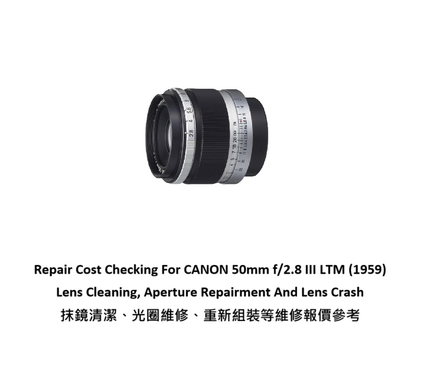 Repair Cost Checking For CANON 50mm f/2.8 III LTM (1959) Lens Cleaning, Aperture Repairment And Lens Crash 抹鏡清潔、光圈維修、重新組裝等維修報價參考