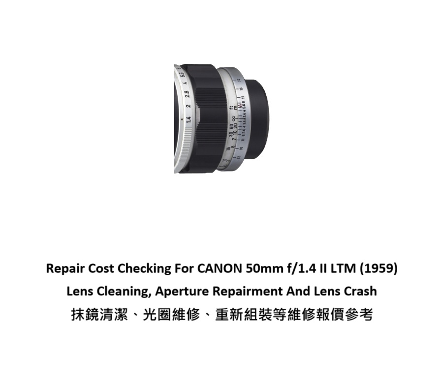 Repair Cost Checking For CANON 50mm f/1.4 II LTM (1959) Lens Cleaning, Aperture Repairment And Lens Crash 抹鏡清潔、光圈維修、重新組裝等維修報價參考